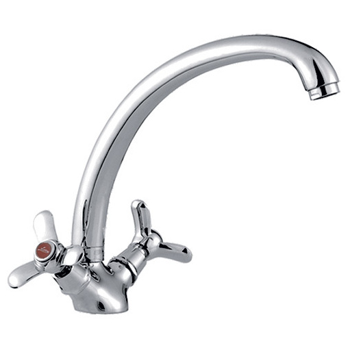 Смеситель для кухни с двумя маховиками толстый гусак
