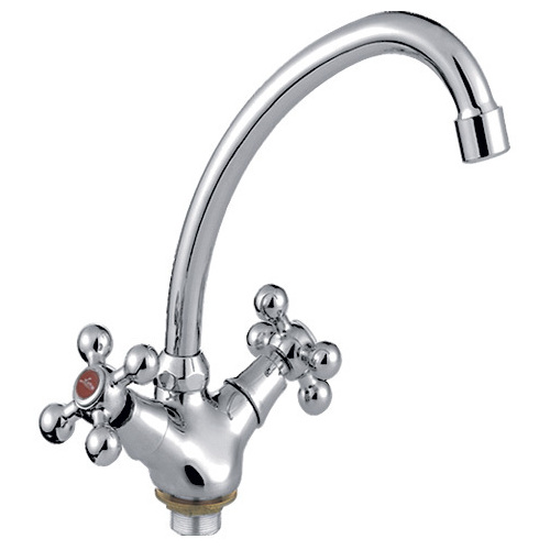 Смеситель для кухни с двумя маховиками с гайкой
