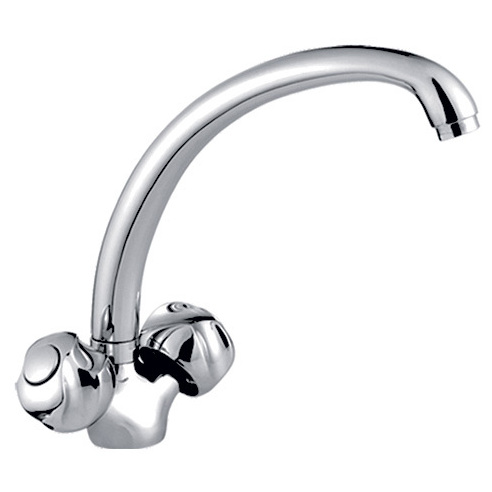 Смеситель для кухни с двумя маховиками толстый гусак